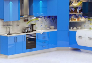 Кухня с фасадами из МДФ покрытыми матовой эмалью. Столешницы из массива дерева.